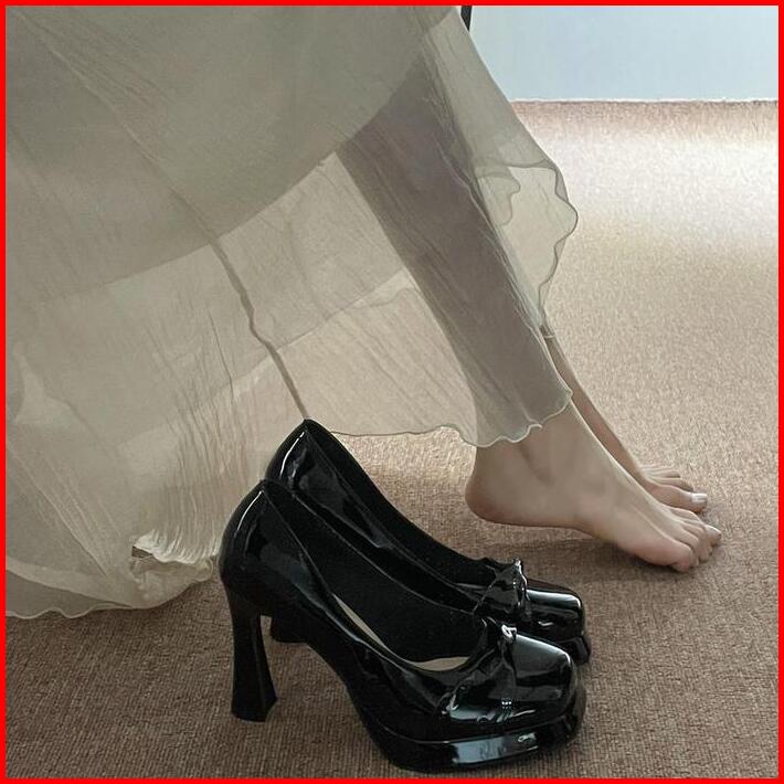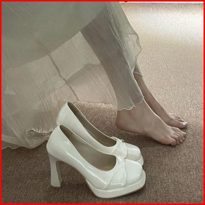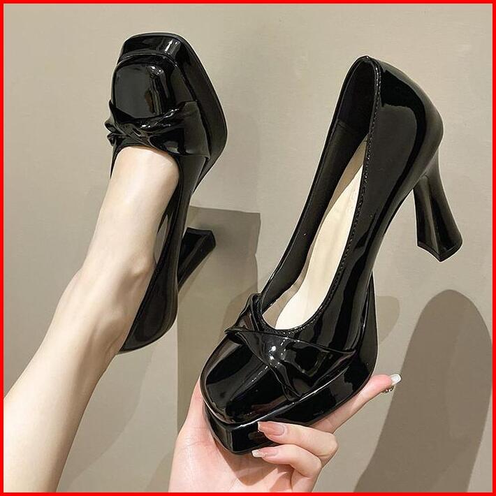 1018 10.5cm Size 34-39 2 Warna Black White Sepatu Hak Tinggi Elegan High Heels Casual