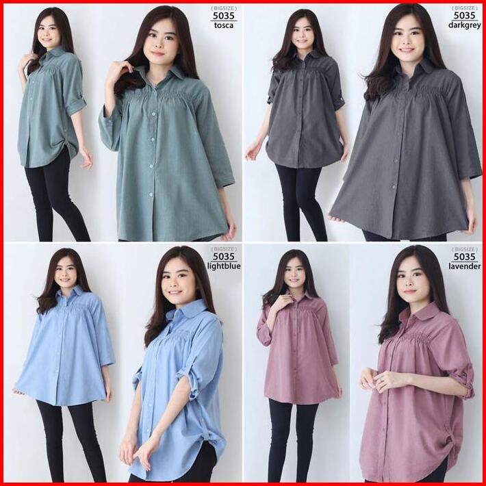 Kemeja Wanita Jumbo Big Oversize 5035 Xxl Xxxl Kerja Kasual Baju Hamil