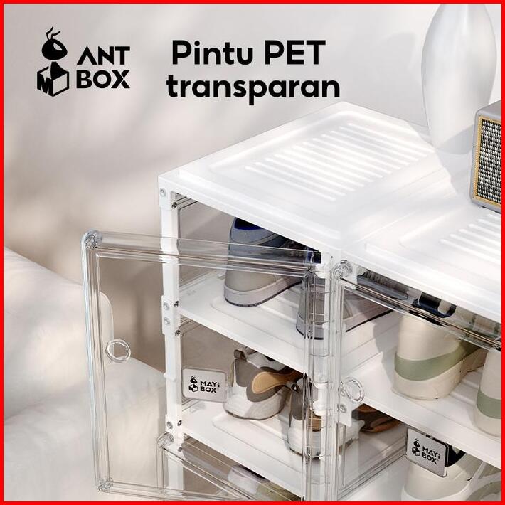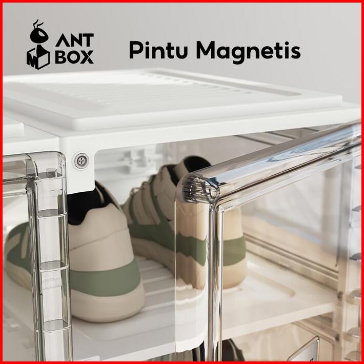 Antbox Rak Sepatu Susun Lemari Sepatu Tertutup Pintu Magnet Bening Transparan Rak Sepatu Minimalis
