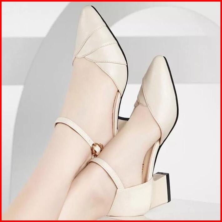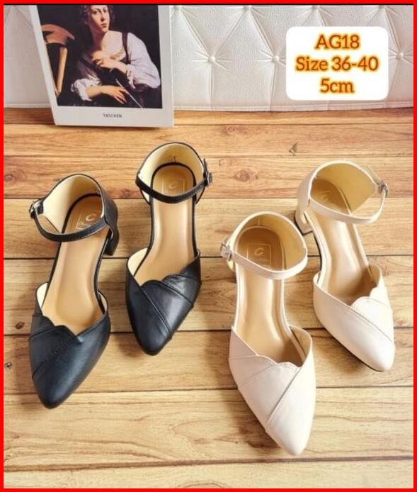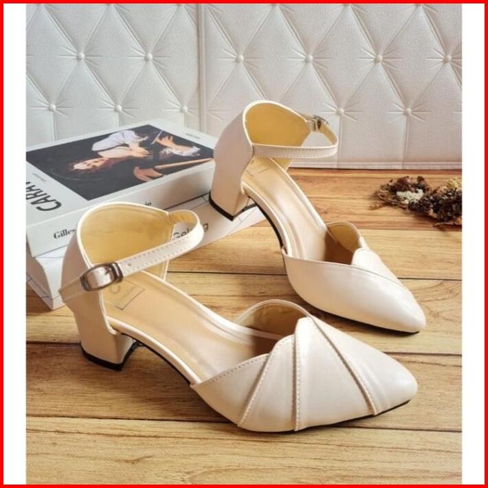 Sepatu Wanita Fashion Korea Krem Cream Ys916 High Heels Hak Kotak Tahu 5cm Pesta Kerja Kantor Formal Kondangan Kasual We