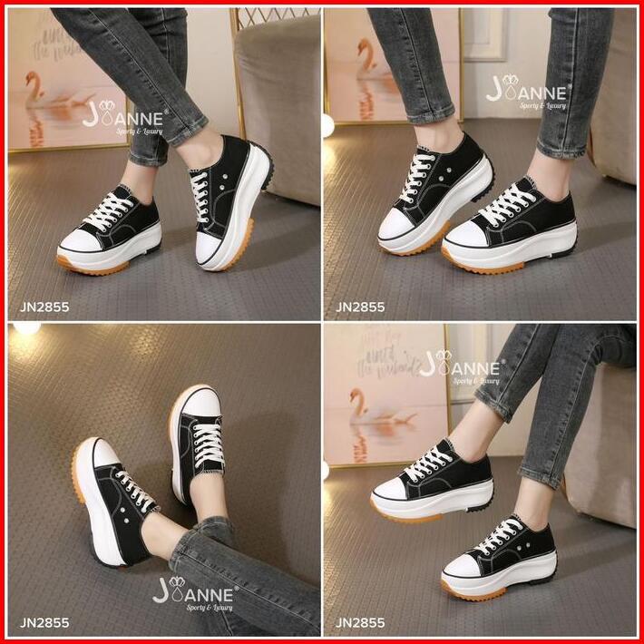 Joanne Casual Wedges Sneakers Shoes Black Wanita Jn2855