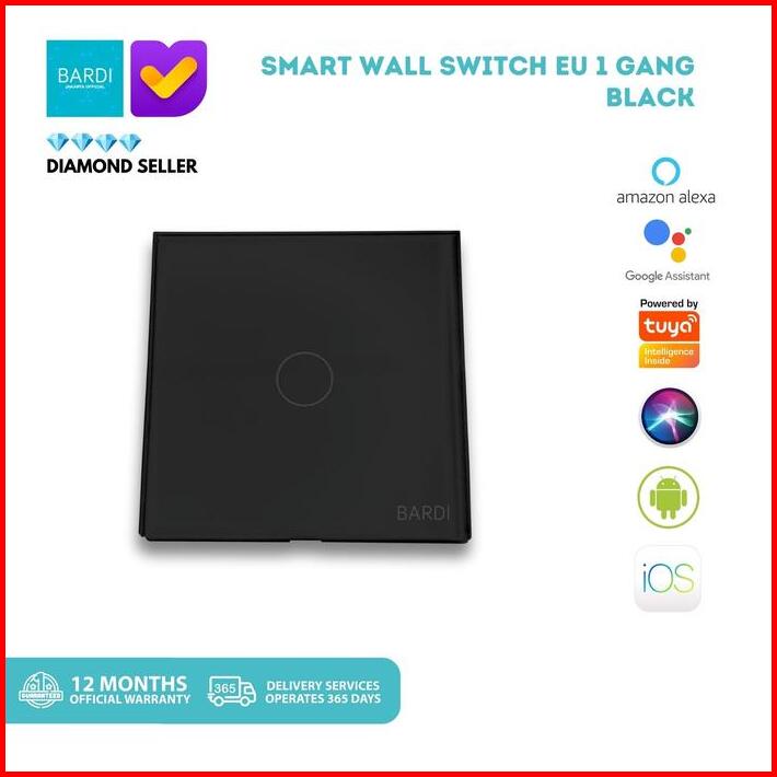Bardi Smart Wall Switch Eu1 Gang Hitam Saklar Wifi Touch Sentuh