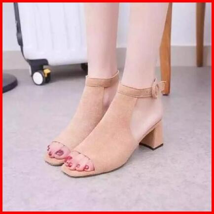Mivelshoes Sepatu Sendal Wanita Fashion Korea Pesta Kerja Kantor Formal Kondangan Ag42 Hak Tinggi 5cm Kotak Tahu Chunky