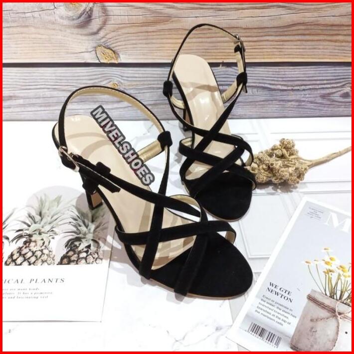 Mivelshoes Sepatu Sandal Wanita High Heels Formal Hak Tinggi 9cm Dv03 Pesta Kekinian Kerja Kondangan Gladiator Sendal Ce