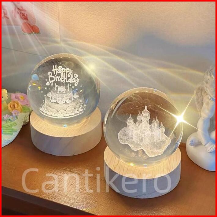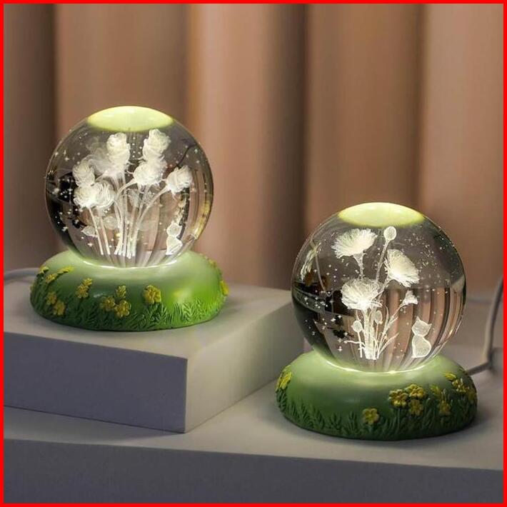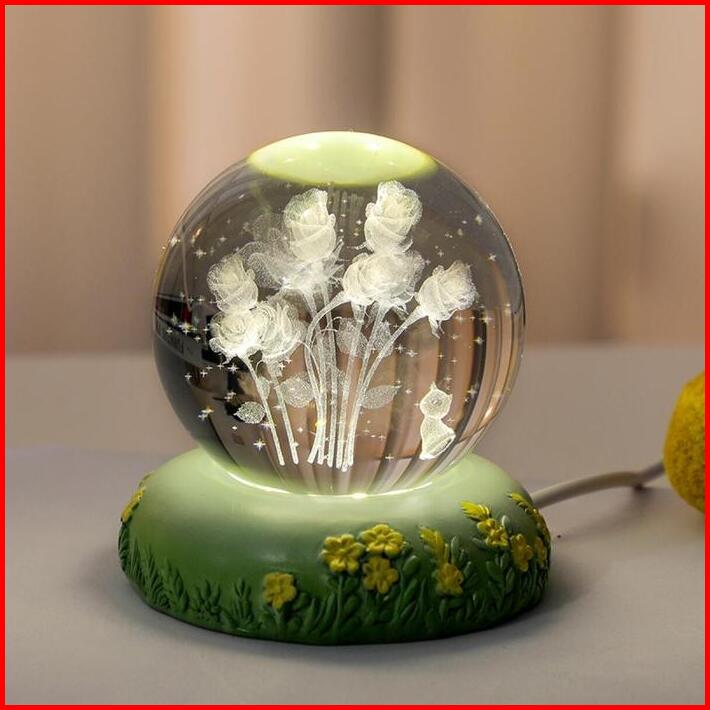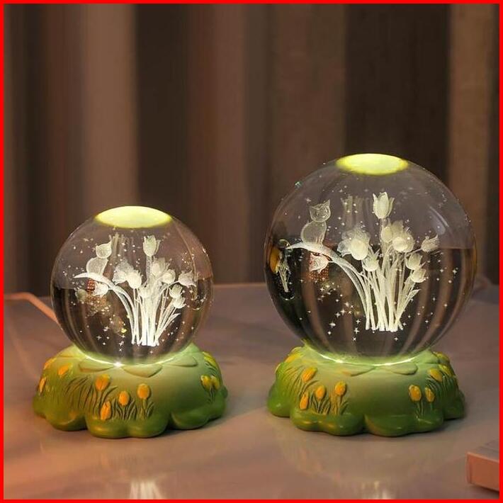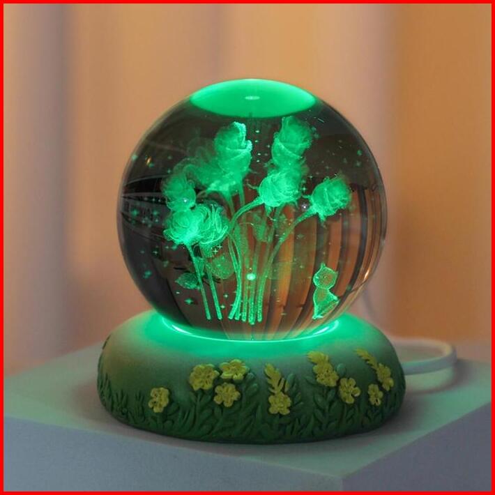 Cahaya Warni Hangat Kristal Led Lampu Bola Kristal Mawar Anak Kucing Usb Planet Led Lampu Tidur Hiasan Meja Dekorasi Kam