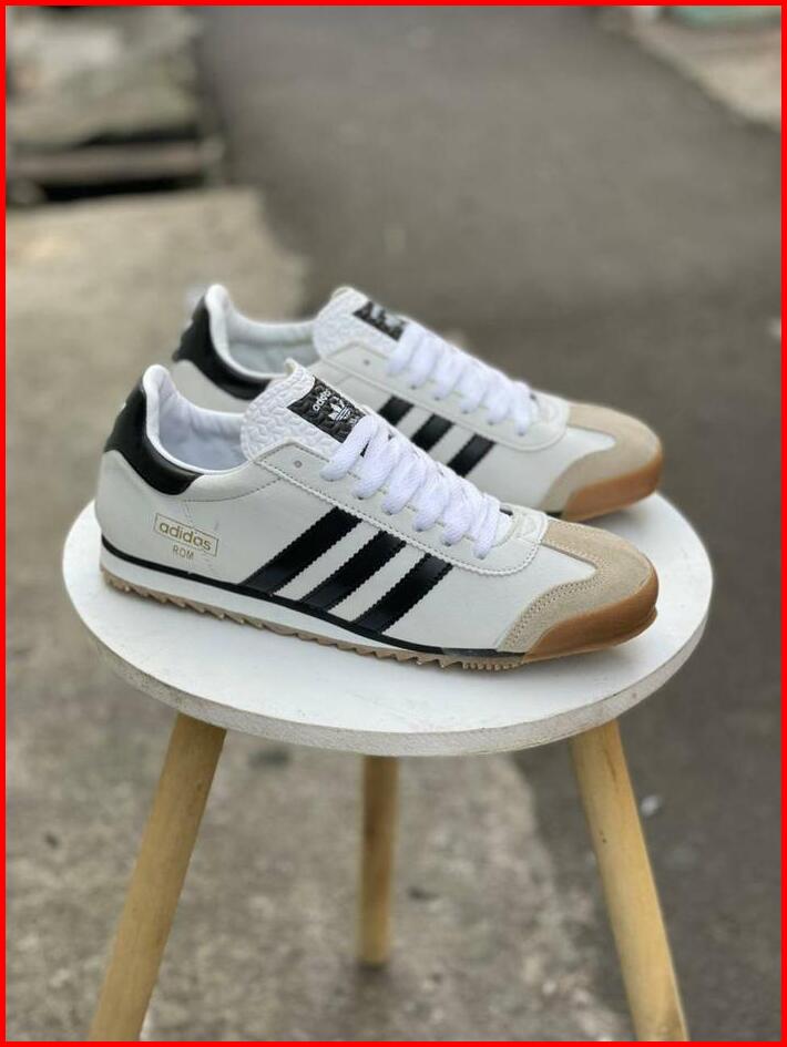 Sepatu Pria Sneakers Adidas Rom Casual Putih Hitam Kanvas