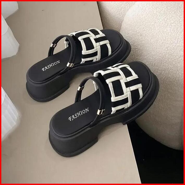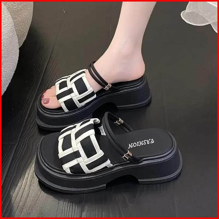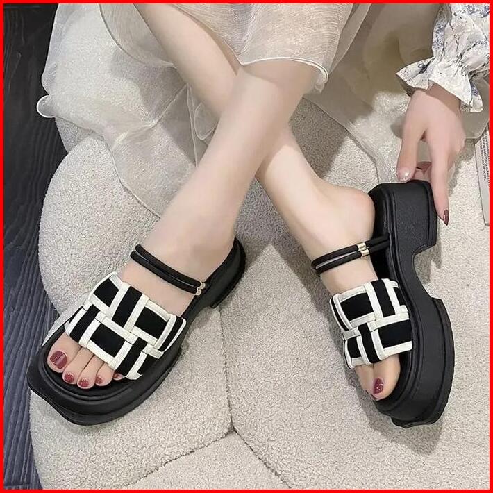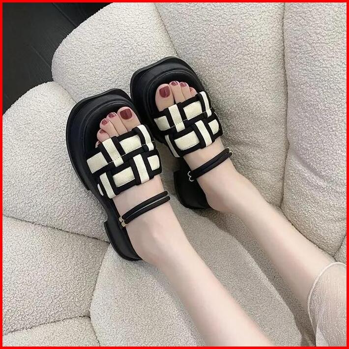 Cintaferina Sandal Flatporm Wanita 5cm Anyam Kekinian Korean Sendal Hitam Selop Kondangan Cewek