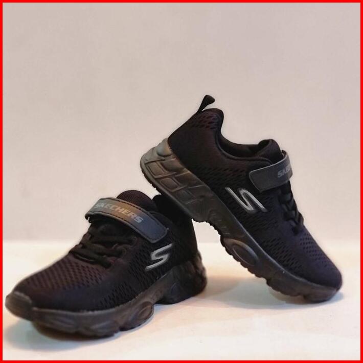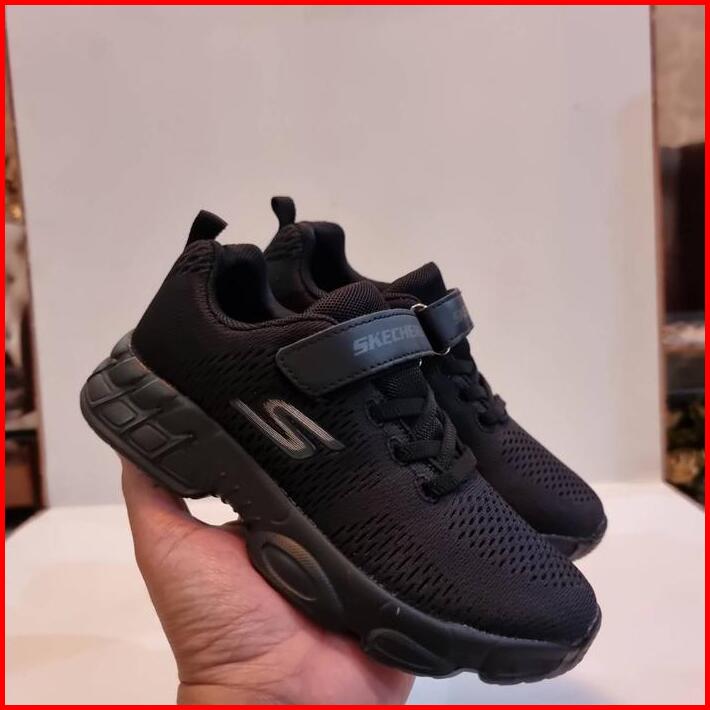 Sepatu Anak Sekolah Laki-laki Perempuan Skechers Full Black Hitam Polo