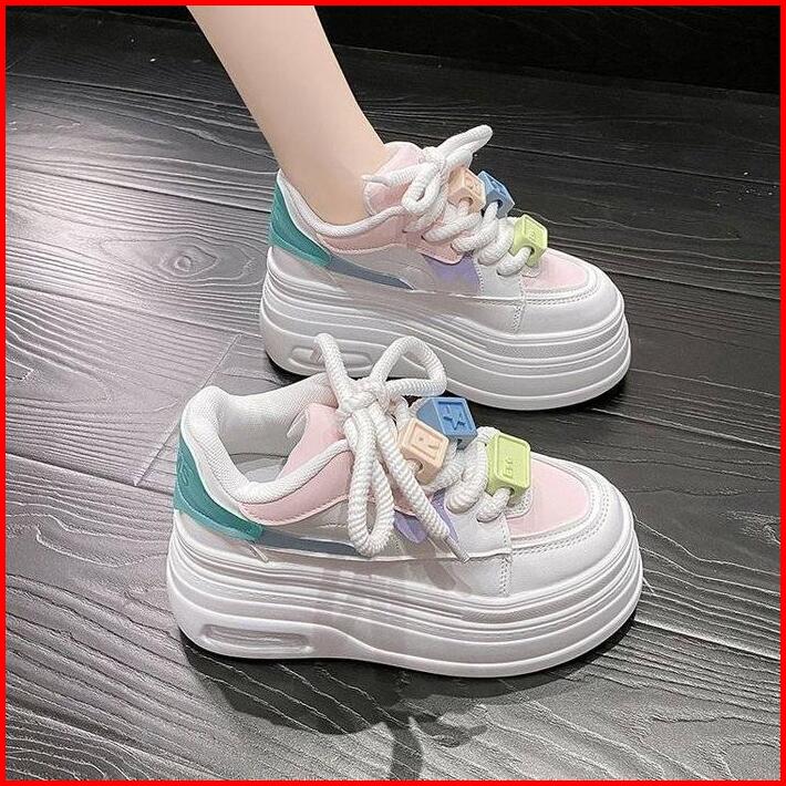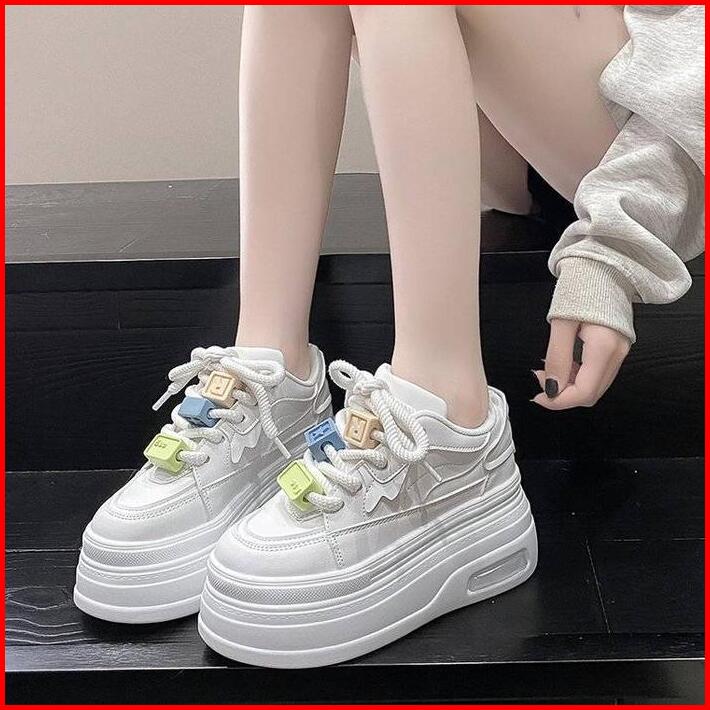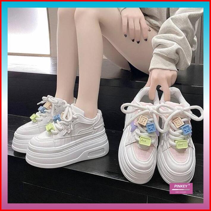 Pinkey P303 Sepatu Sneakers Boots Tinggi Wanita Sneakers Shoes Hak Tebal Casual Sport Putih Kasual