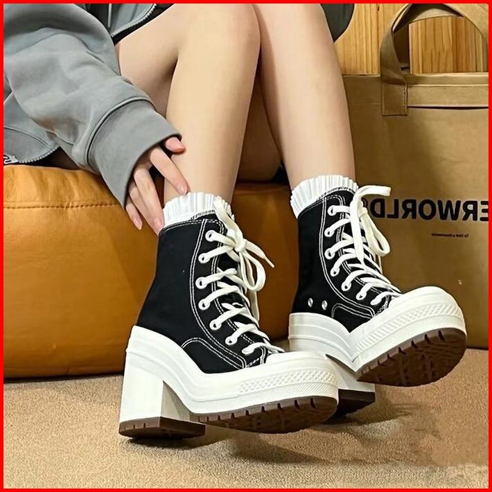 Pinkey P320 Sepatu Boots Tinggi Untuk Wanita Trendy Model Korean Style Dengan Bahan Kanvas