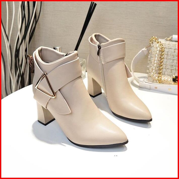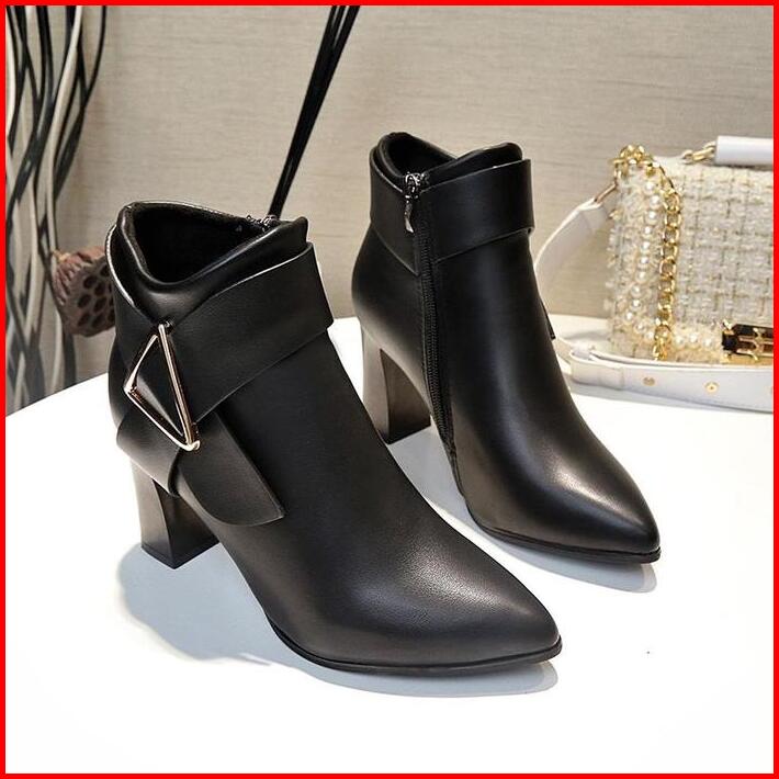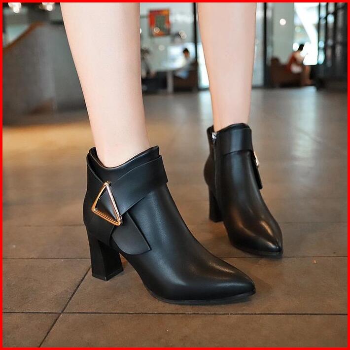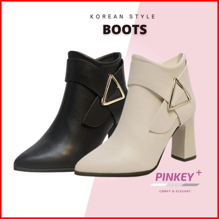 Pinkey P060 Sepatu Hak Tinggi Wanita Fashion Black Boots Shoes