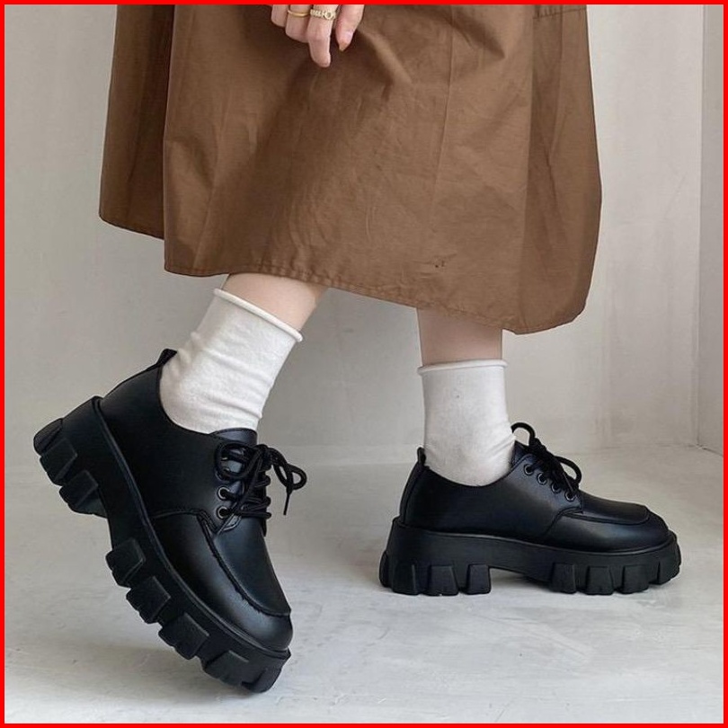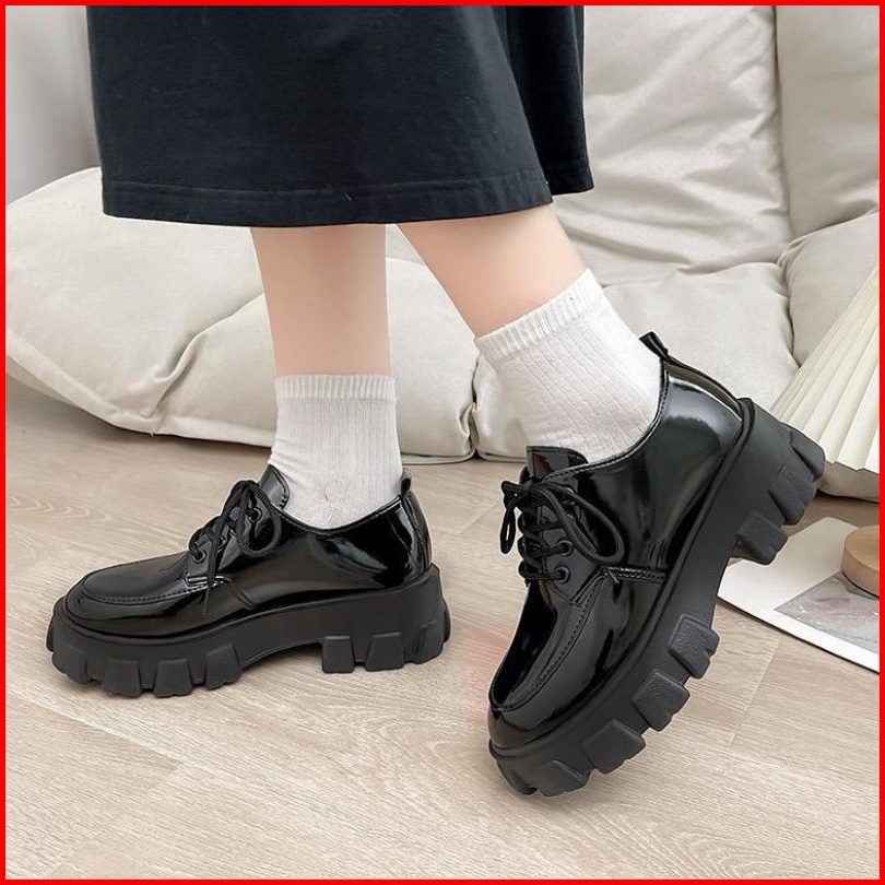 22004 Sepatu Docmart Hitam Wanita Sepatu Oxford Murah Korea Boots Tali Ikat 10229