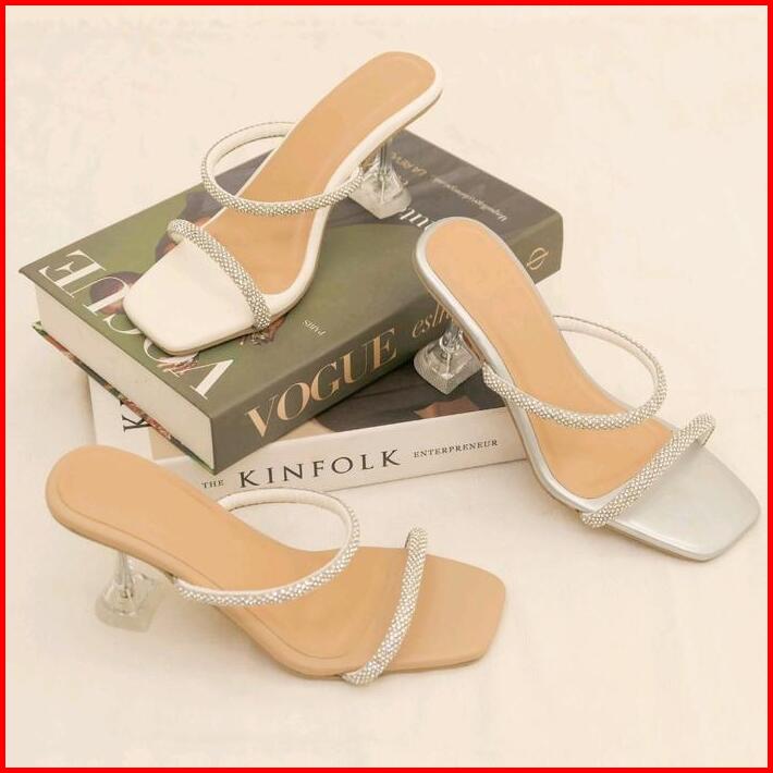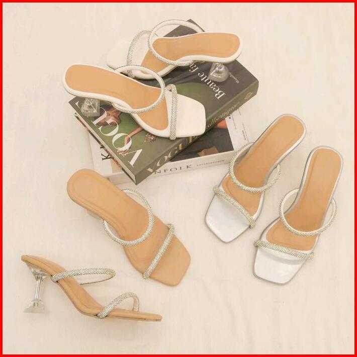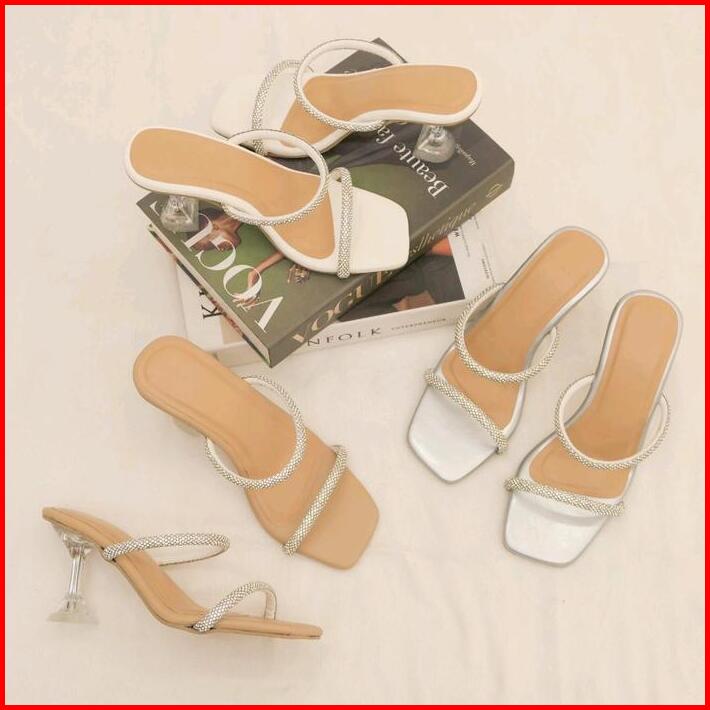 Dcollection My 04 Sandal Wanita Pesta Heels Kaca Tinggi 7 Cm Terbaru Karet Shoes
