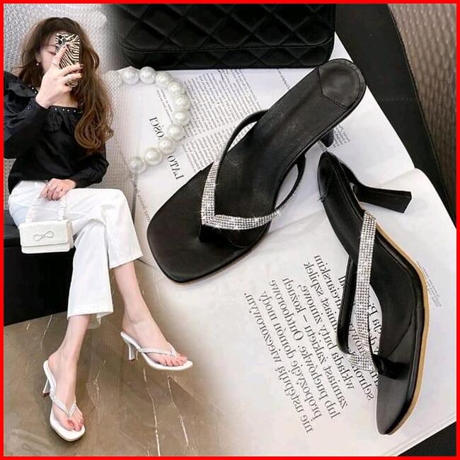 Dcollection Ar 03 Sandal Wanita Heels Jepit Tali Permata Hak Tinggi 7 Cm Stiletto Korean Style