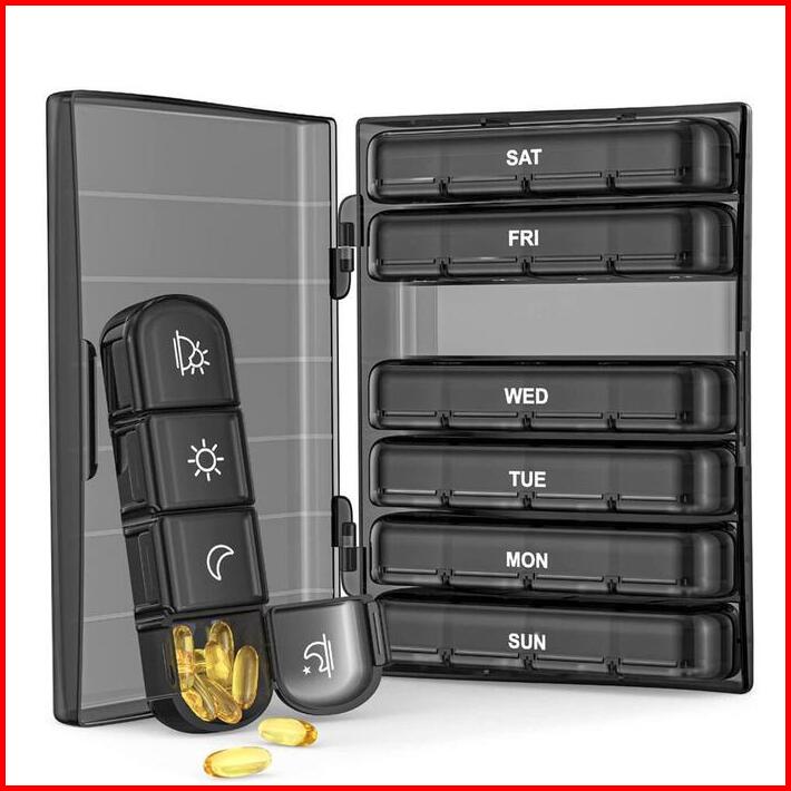 Kotak Obat 7 Hari 4 Waktu Warna Hitam Medicine Travel Box Pill Tablet Box Tempat Obat Harian Pagi Siang Malam 7 Hari
