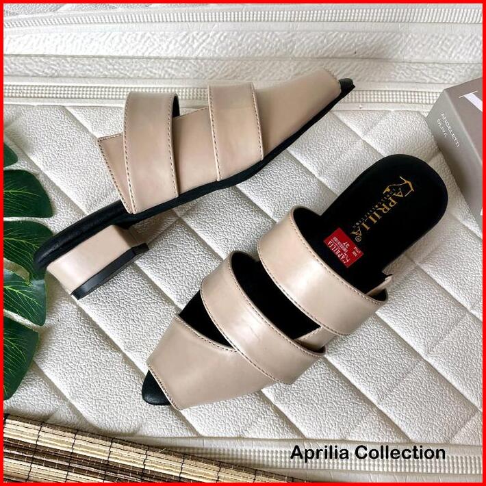 Sandal Wanita Kekinian Hak Tahu 3cm Sandal Selop Mules Slip On Anti Licin Sendal Kasual Cewek Shoes Pesta