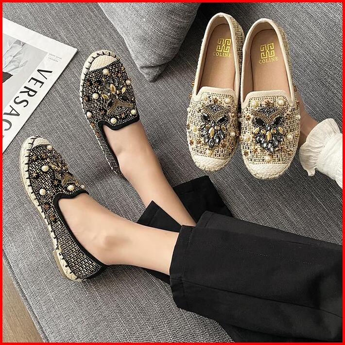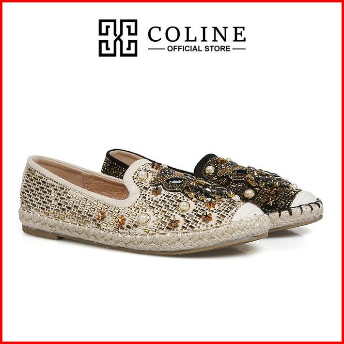 Coline Cln-8293 Flat Shoes Loafers Espadrilles Wanita Sepatu Glitter Wanita C1182 Karet Sneakers