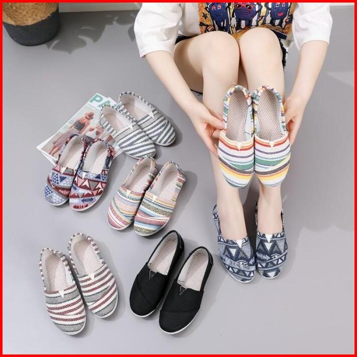Sh49 Sepatu Kanvas Wanita Flat Pelangi