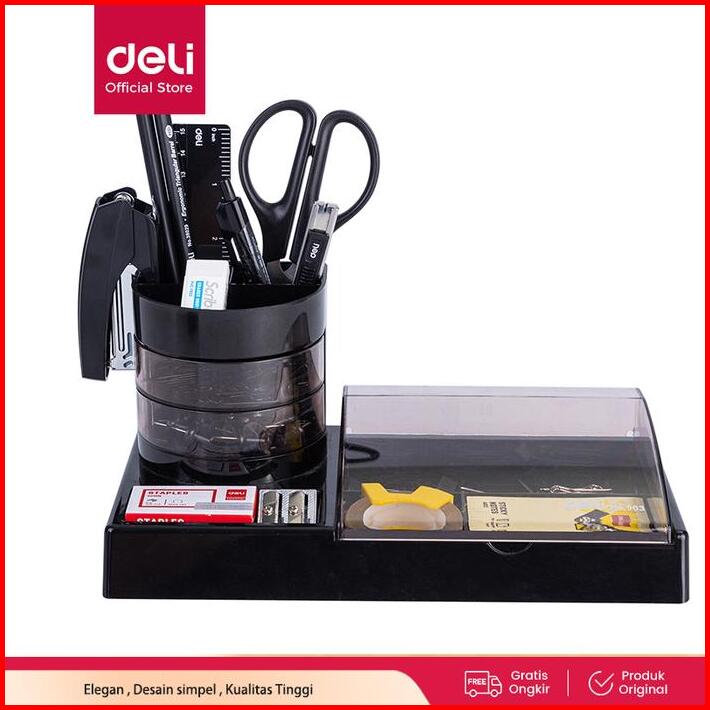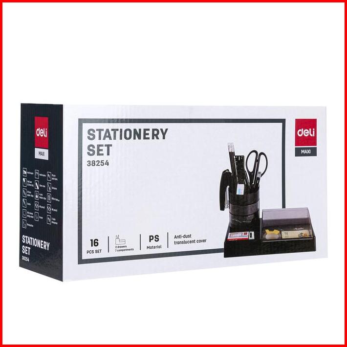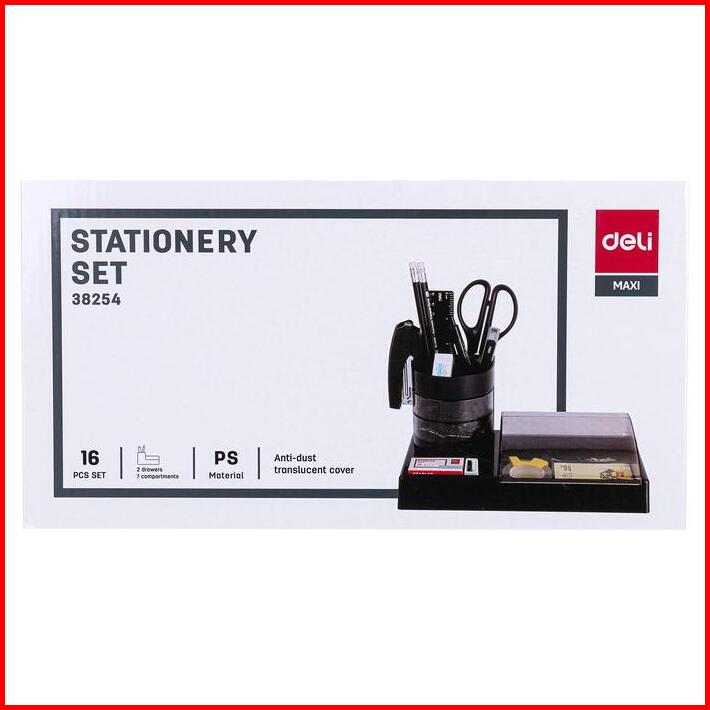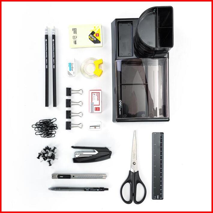 Deli Set Alat Tulis Kantor Atk Stationary Set Paket Hemat Super Lengkap E38254 Hitam Metal Pen Binder