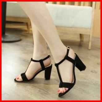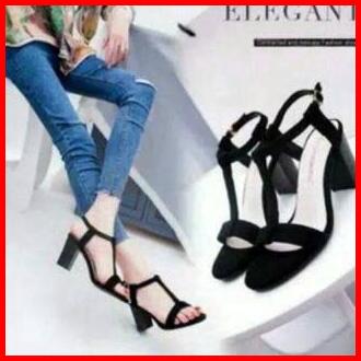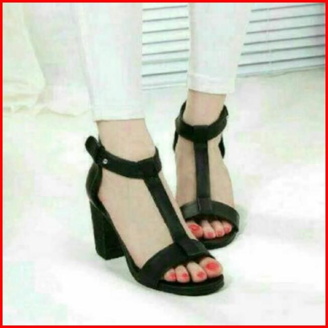 Sepatu Sendal Wanita Premium Ec04 Hitam Black High Heels Hak 5cm Kotak Tahu Sandal Pesta Kerja Kantor Formal Kasual Kond