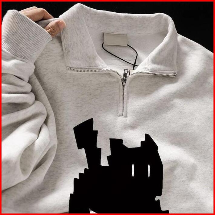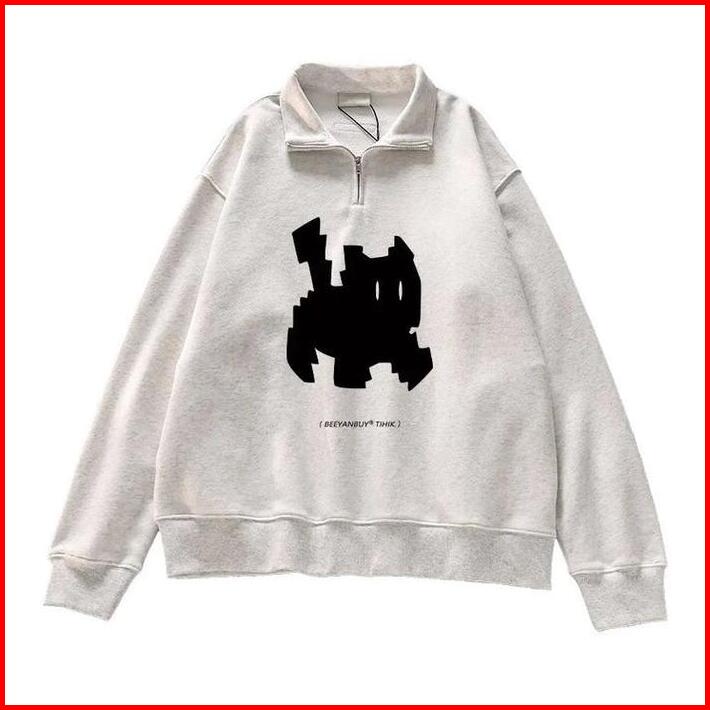 Sweater Halfzip Piksel Oversize Wanita Fit Fleece Abu Hitam