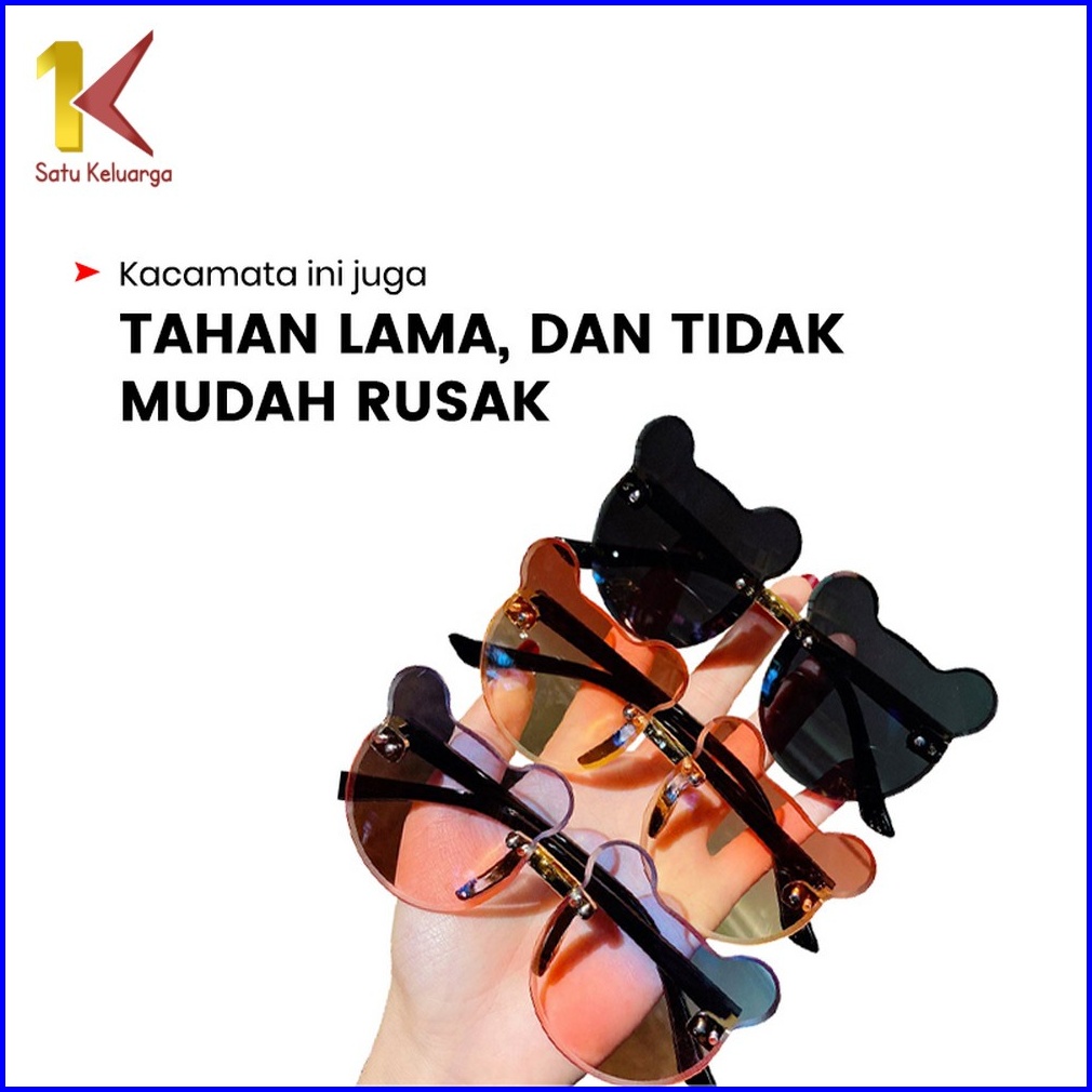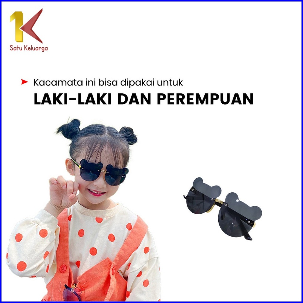 Satu Keluarga Kacamata Beruang Hitam Anak Bayi C672 Sunglasses Kids Fashion Kaca Mata Bear Shape Tanpa Bingkai Korean St