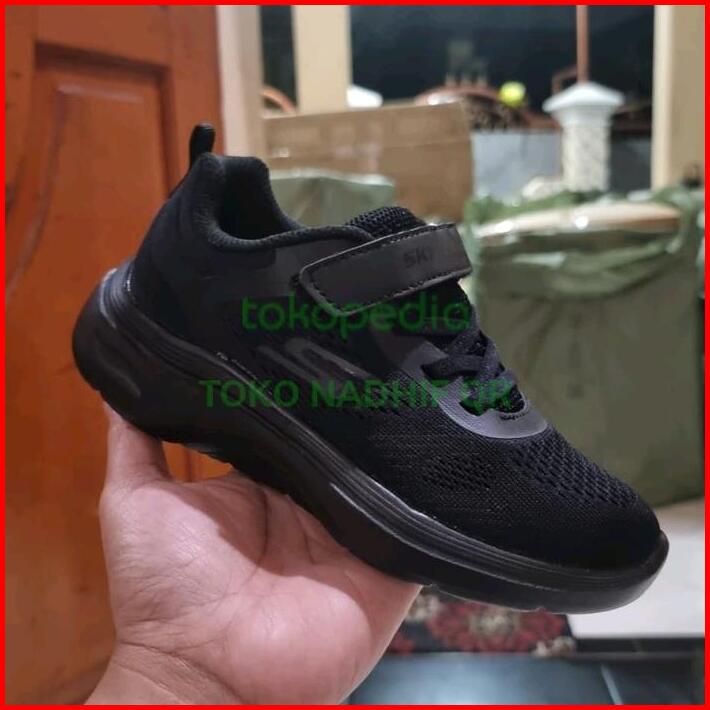 Sepatu Sekolah Anak Laki Laki Perempuan Skechers Hitam Polos