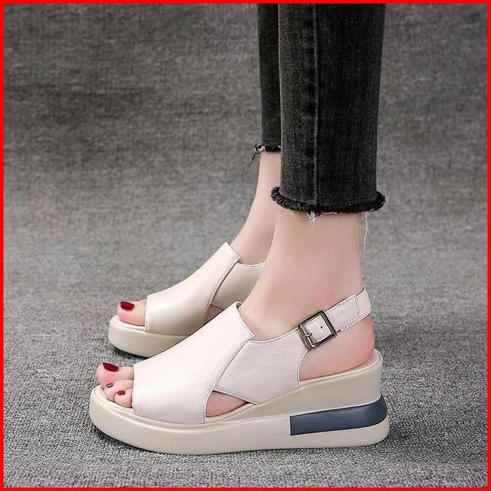 Sandal Cewek Wedges Casual Korean Style Karet Sendal Wanita Kekinian Terbaru Round Toe Open Sendal Wanita Wedges Kekinia