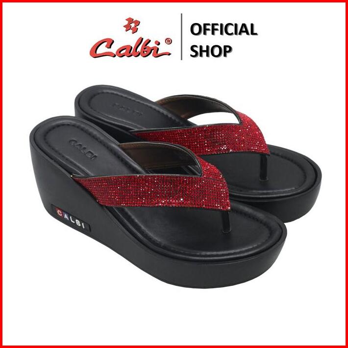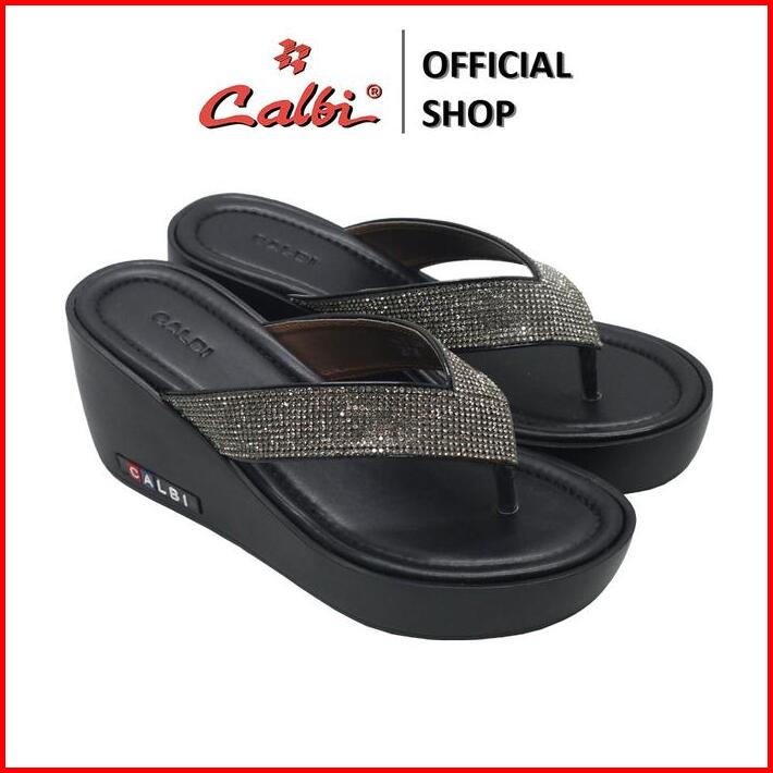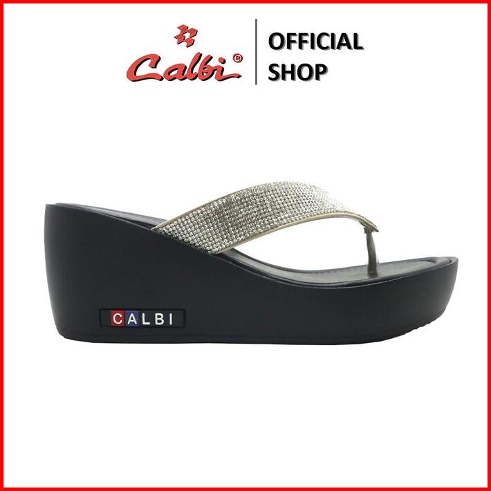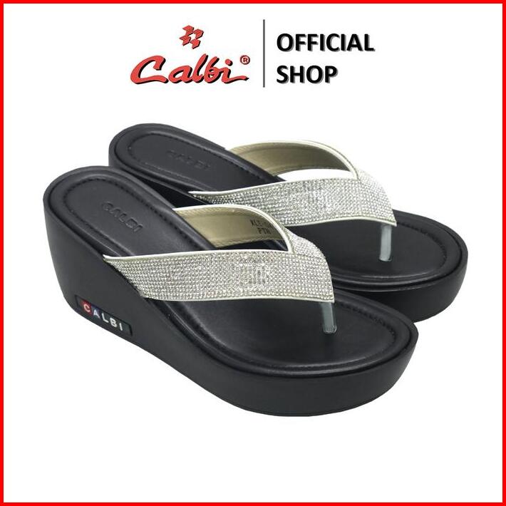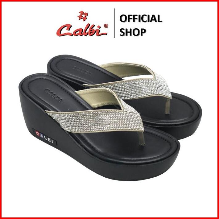 Calbi Kle 04 Sandal Wedges Perempuan 7cm Jepit Bling-bling Pesta Mewah