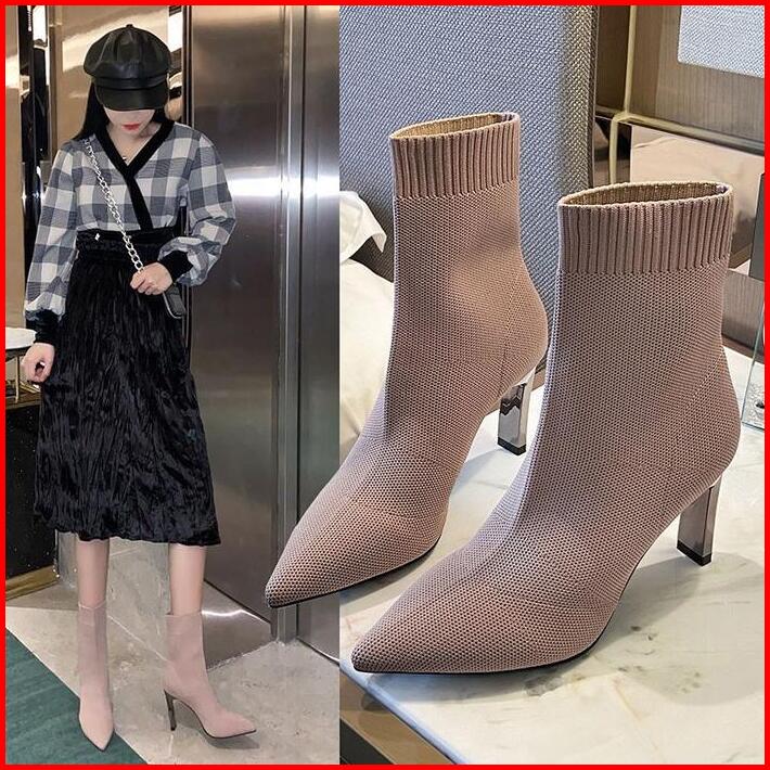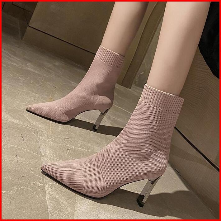 Pinkey P137 Sepatu Wanita Hak Tinggi Boots Fashion Hitam Karet Pink Shoes Pink
