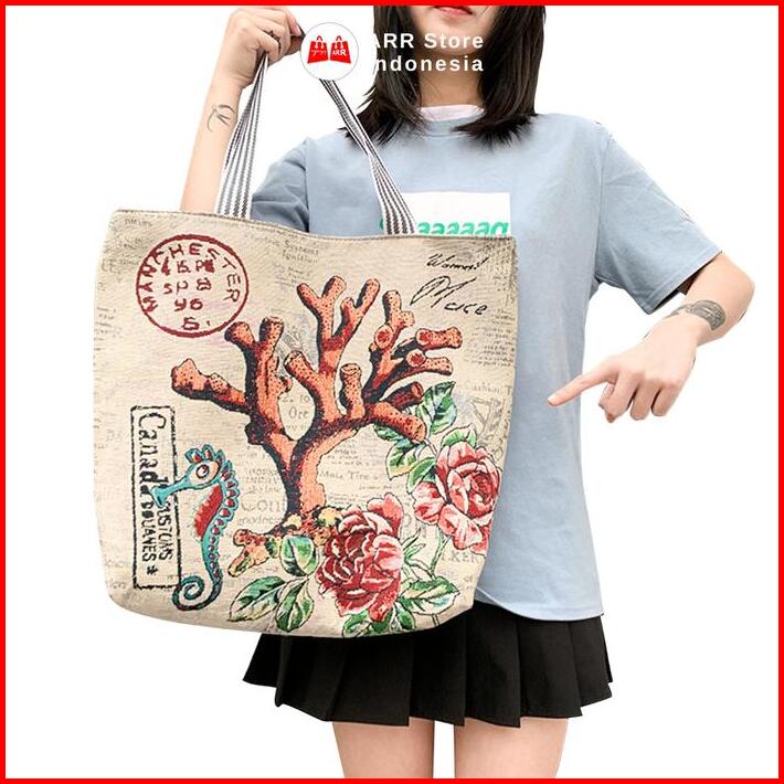 Tas Tote Bag Selempang Sling Bag Kanvas Wanita Thailand Motif