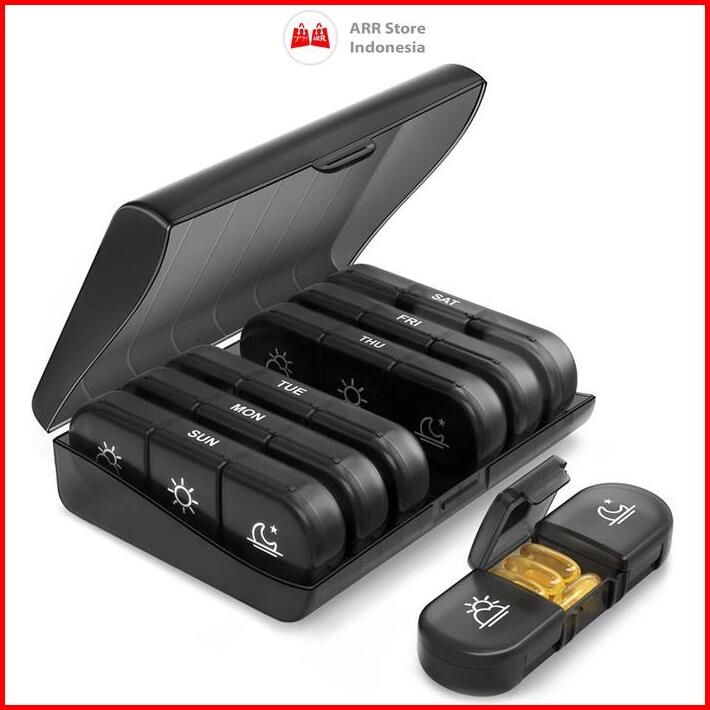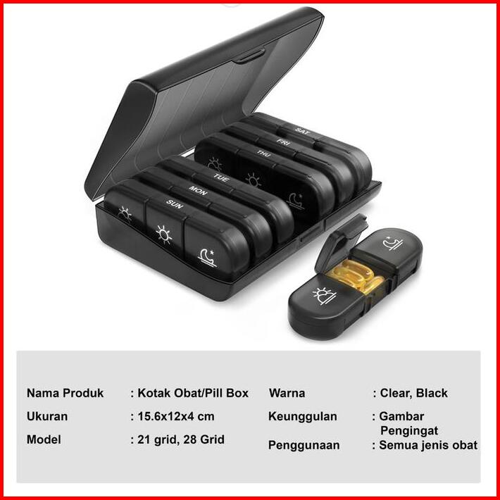 Kotak Obat 7 Hari 3 Waktu Warna Hitam Medicine Travel Box Pill Tablet Box Tempat Obat Harian Pagi Siang Malam 7 Hari