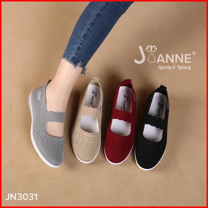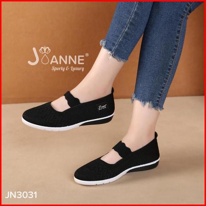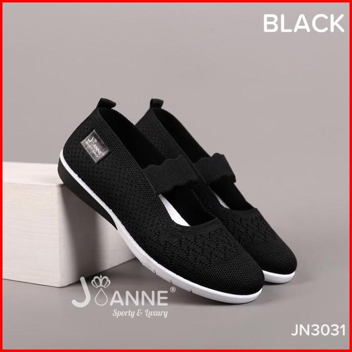 Joanne Flyknits Flat Shoes Wanita Jn3031 Black Merah