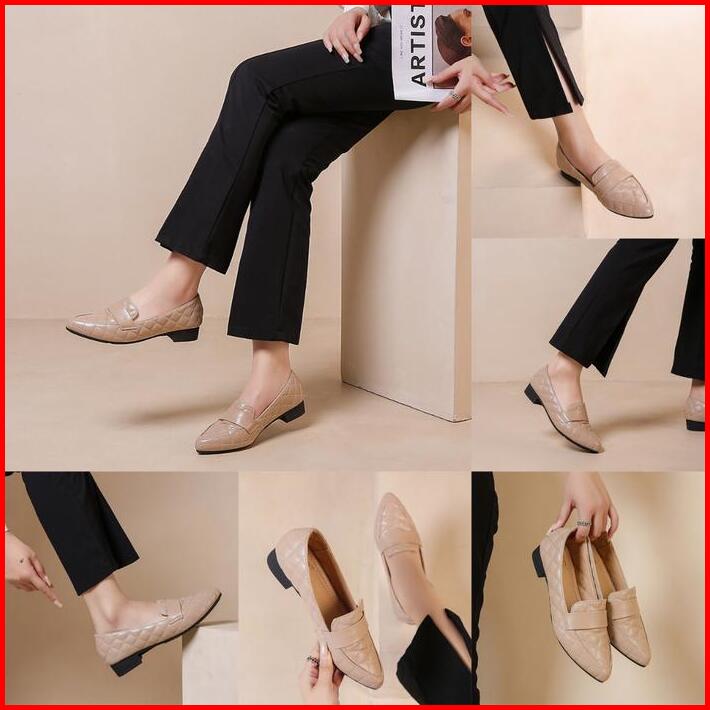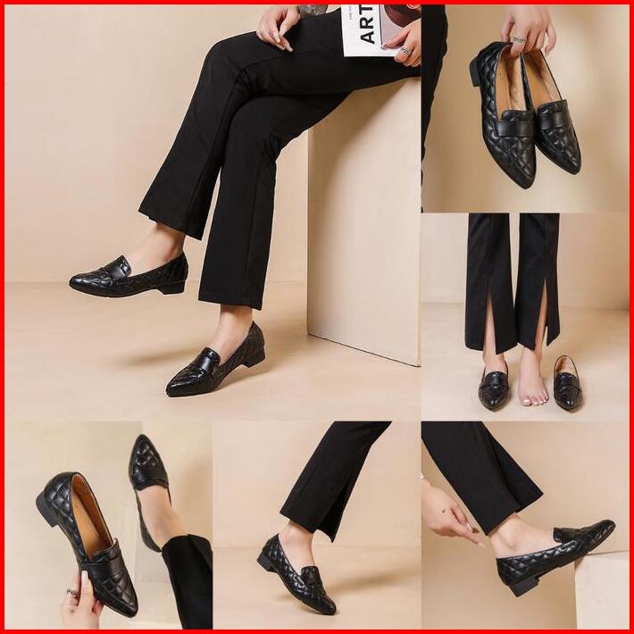 Coline Cln-7619 Sepatu Wanita Flatshoes Loafers Sepatu Kerja Wanita C1201 Karet Shoes Hitam Cewek