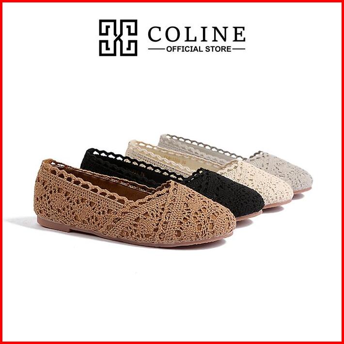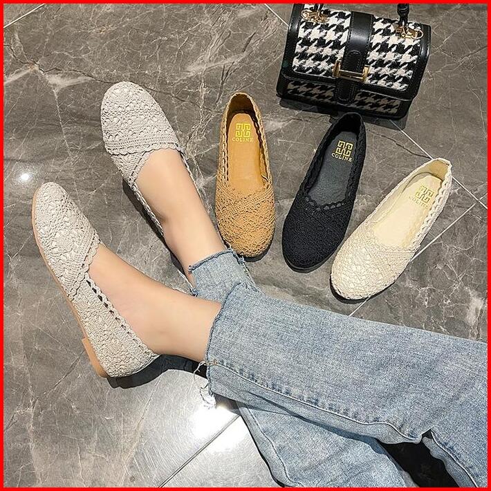 Coline Cln-3368 Sepatu Slip On Flat Shoes Brokat C1153 Karet Flat Wanita Kerja Perempuan Hitam Cewek