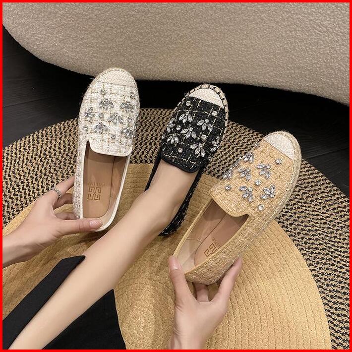 Coline Cln-3905 Flatshoes Espadrilles Tweed Flatshoes Wanita Diamond C1169 Karet Shoes Flat Cewek