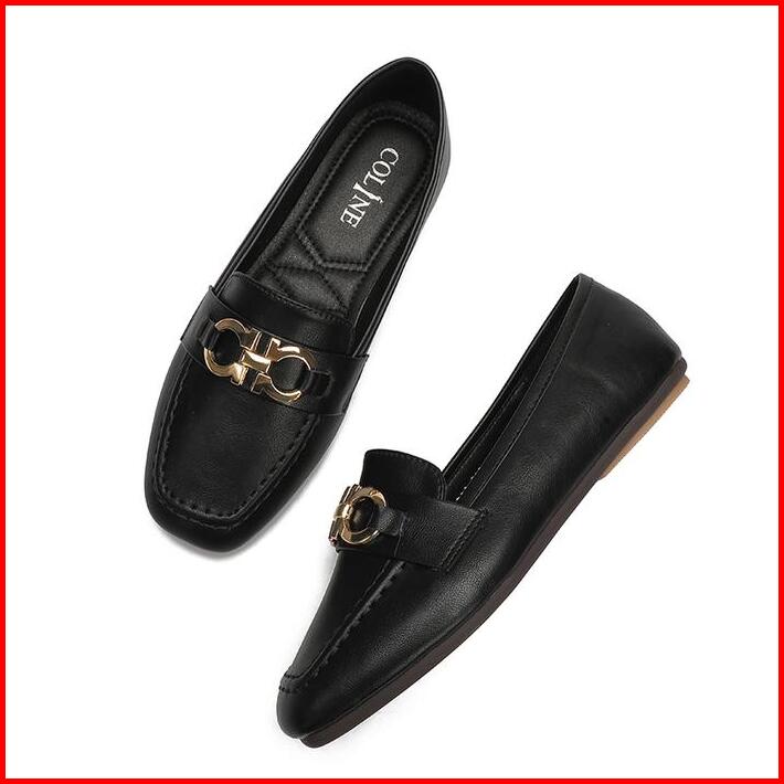Coline 893-560 Sepatu Flatshoes Kerja Wanita C1051 Karet Shoes Flat Cewek Hitam Perempuan