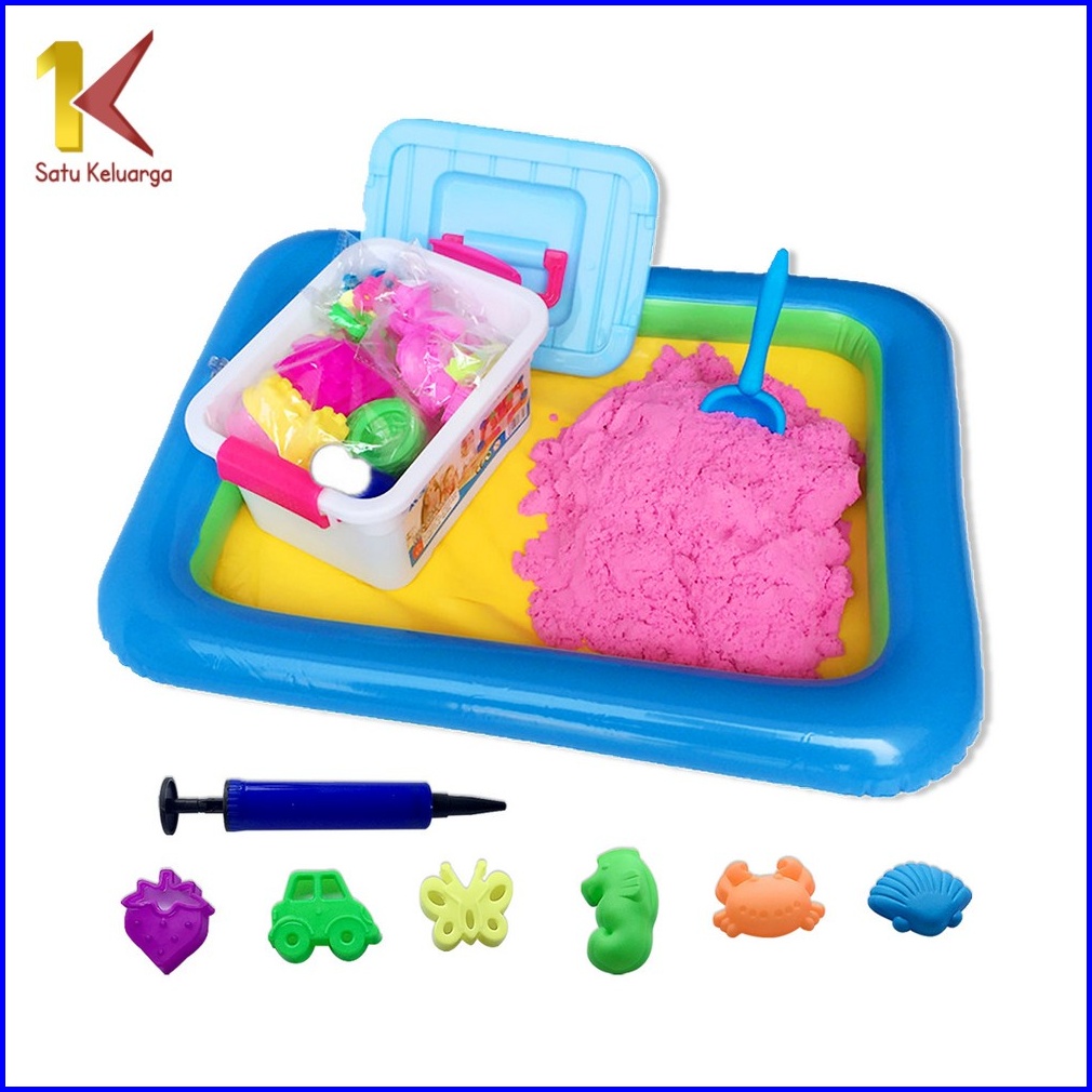 Satu Keluarga Mainan Pasir Ajaib Set M180 Magic Sand 1.5kg 3 Warna Sekop Cetakan Pasir Ajaib Box Container