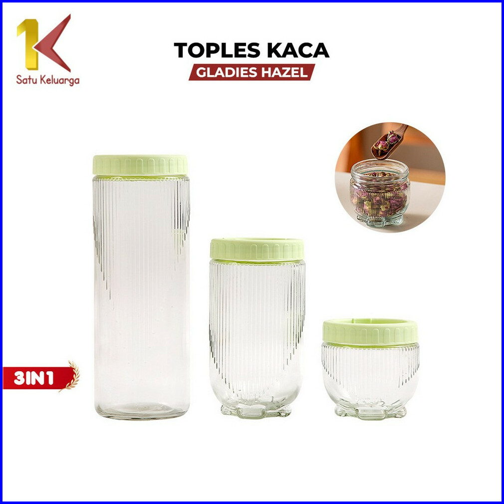 Satu Keluarga Toples Kaca Gladies Hazel Set 3pcs C1171 Toples Kue Lebaran Stoples 3in1 Anti Tumpah