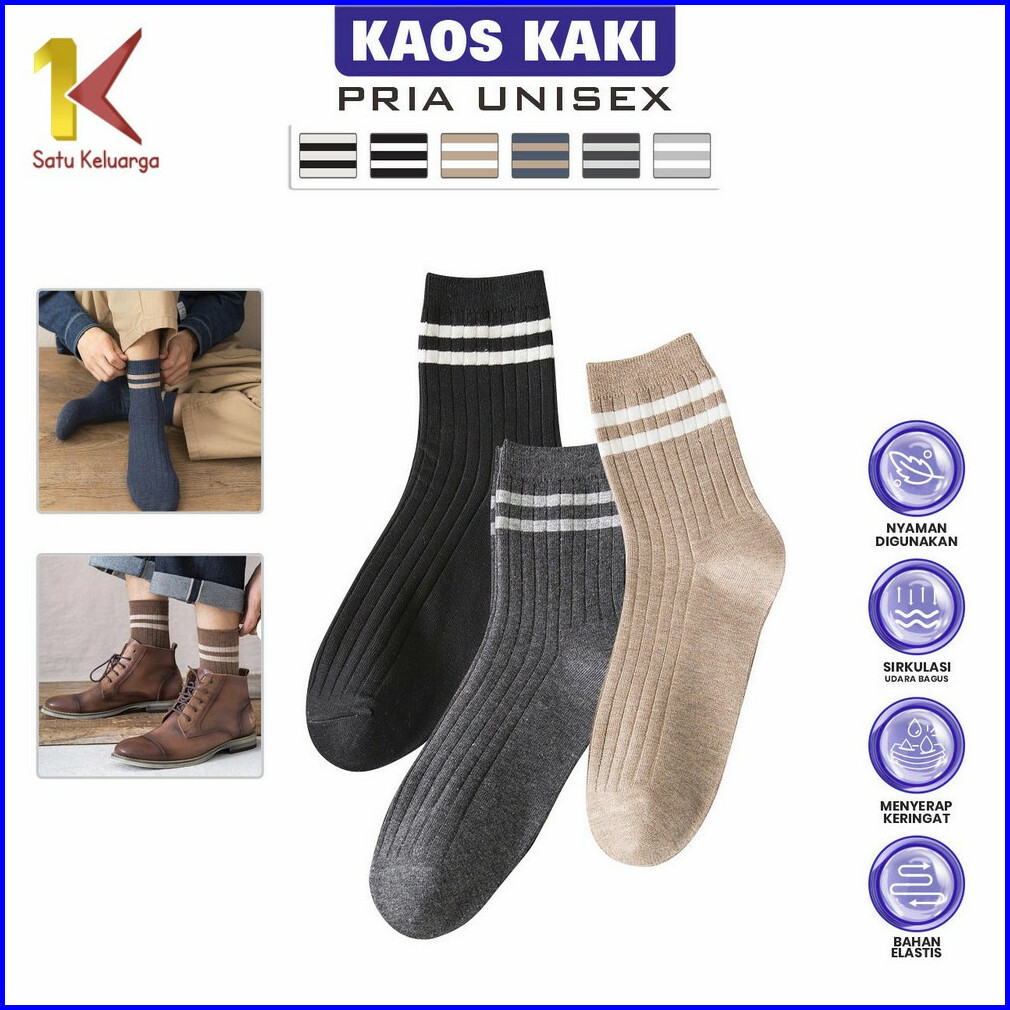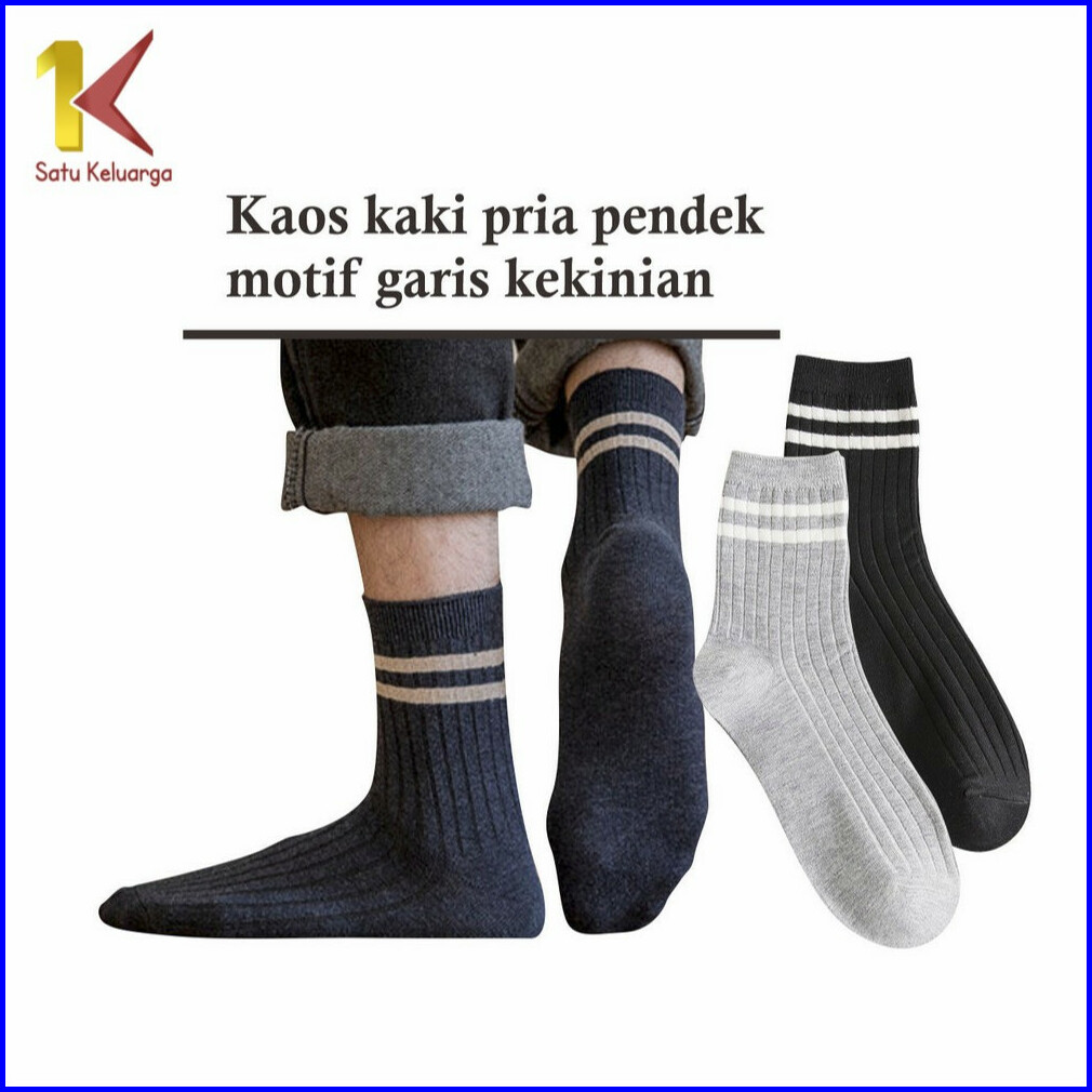 Satu Keluarga Kaos Kaki Pria Unisex Motif Garis Strip P620 Kaus Kaki Pendek Wanita Pria Bahan Katun Crew Socks Striped C