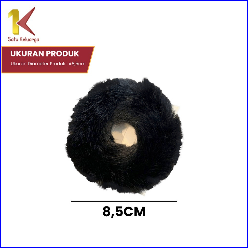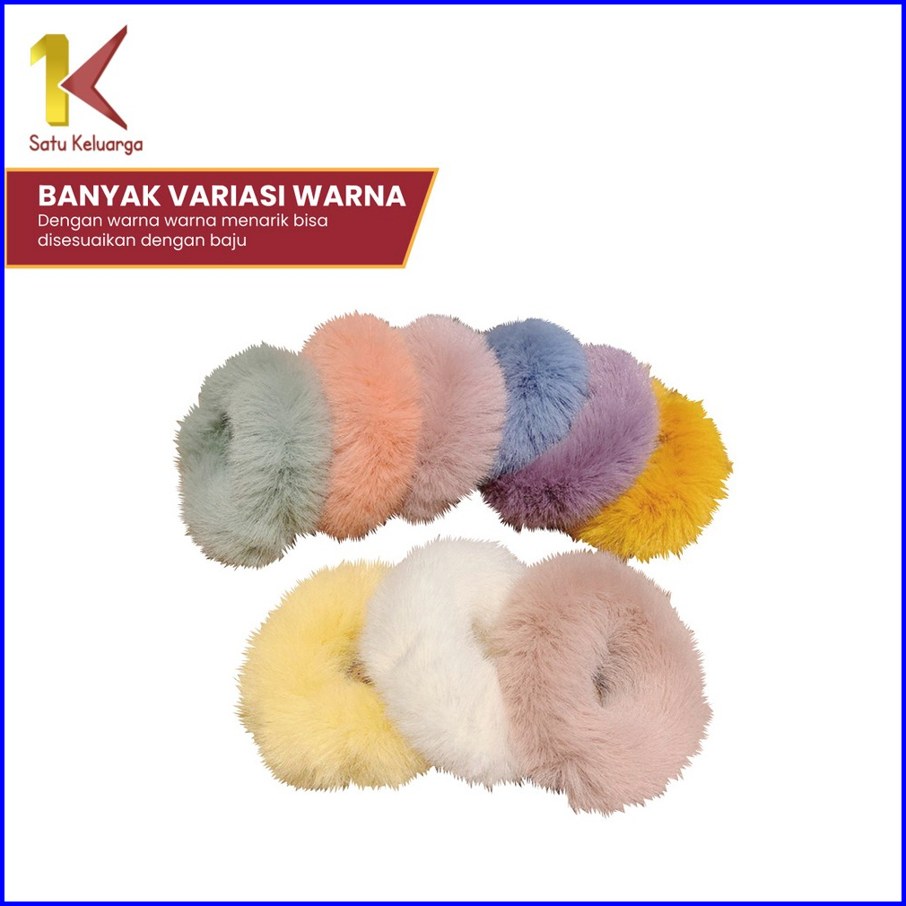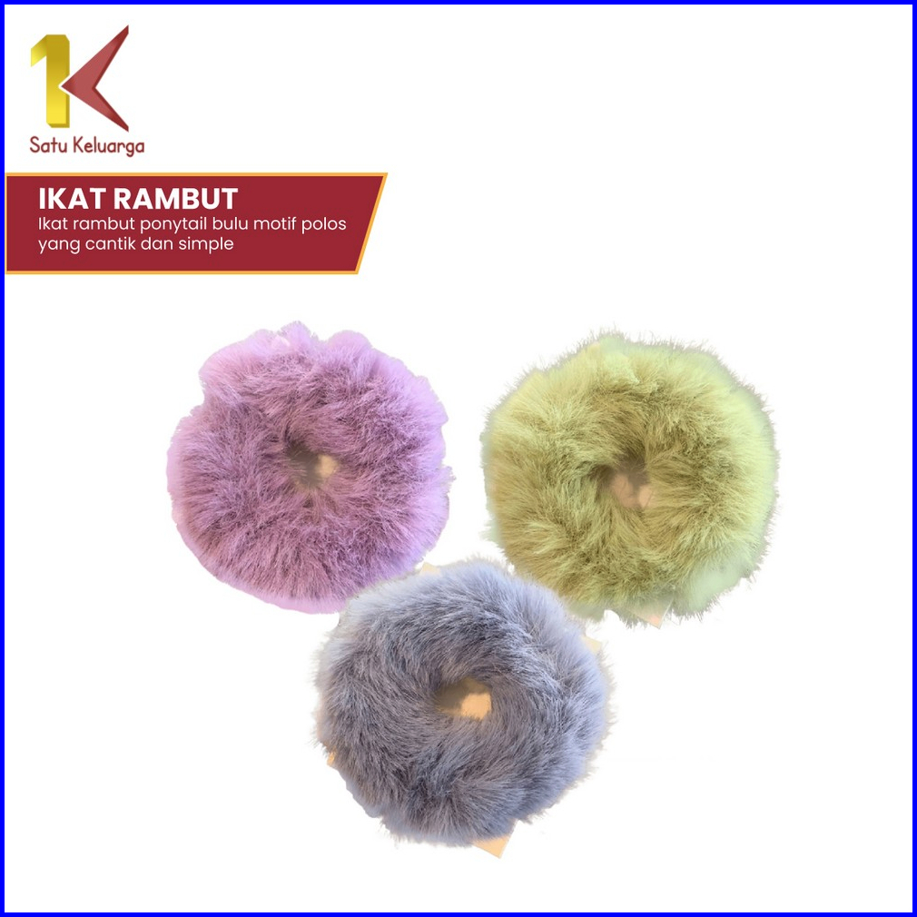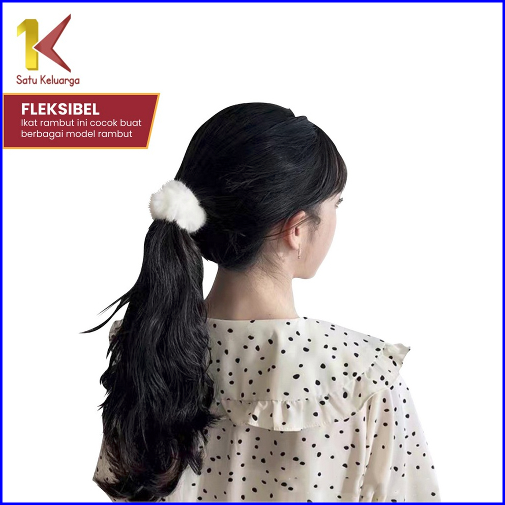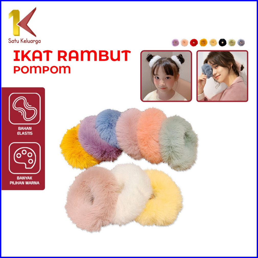 Satu Keluarga Ikat Rambut Bulu Pompom Polos Elastis C877 Karet Aksesoris Rambut Cepol Scrunchie Ponytail Wanita Korea Ik