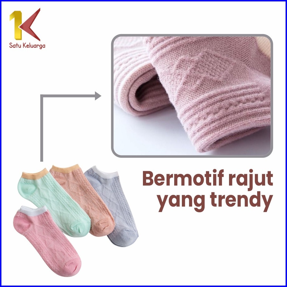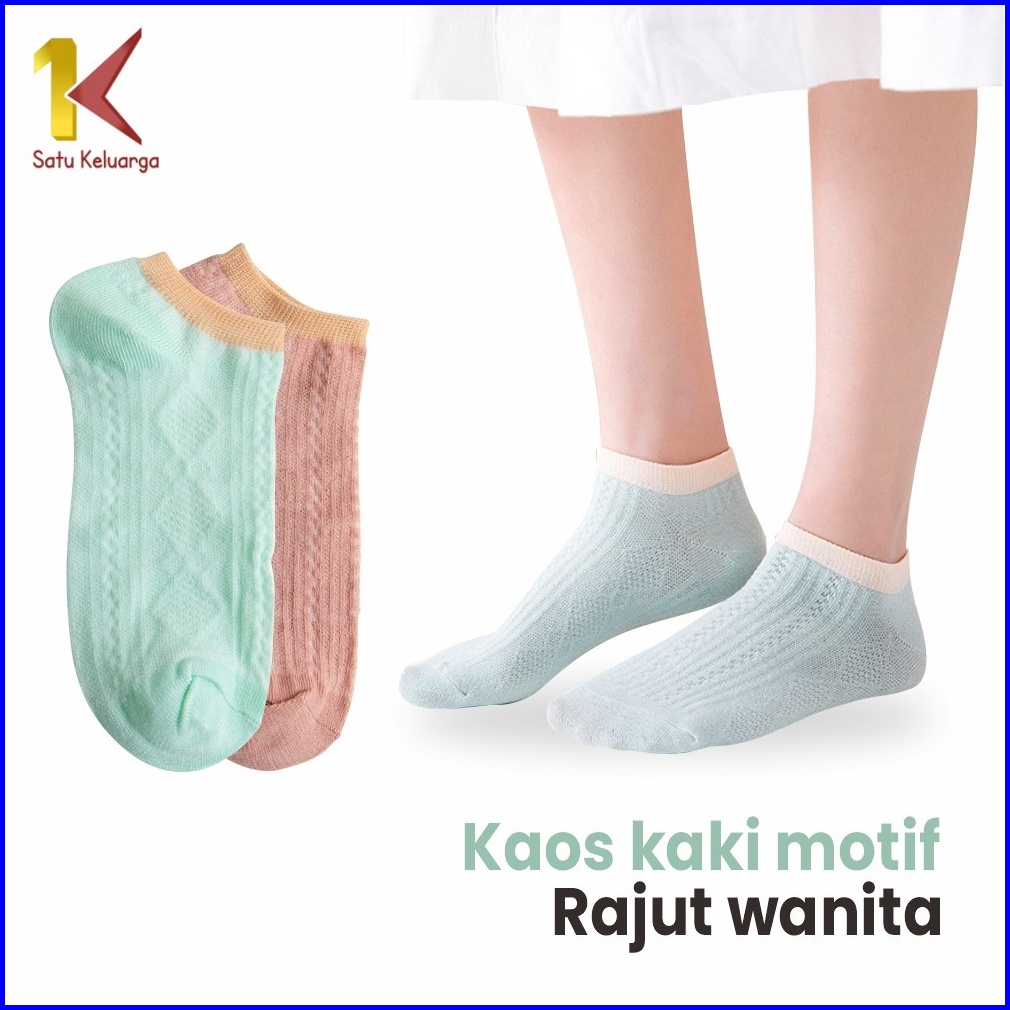 Satu Keluarga Kaos Kaki Wanita Motif Rajut P281 Kaus Kaki Pendek Motif Semata Import Motif Polos Pattern Ankle Sock Wome