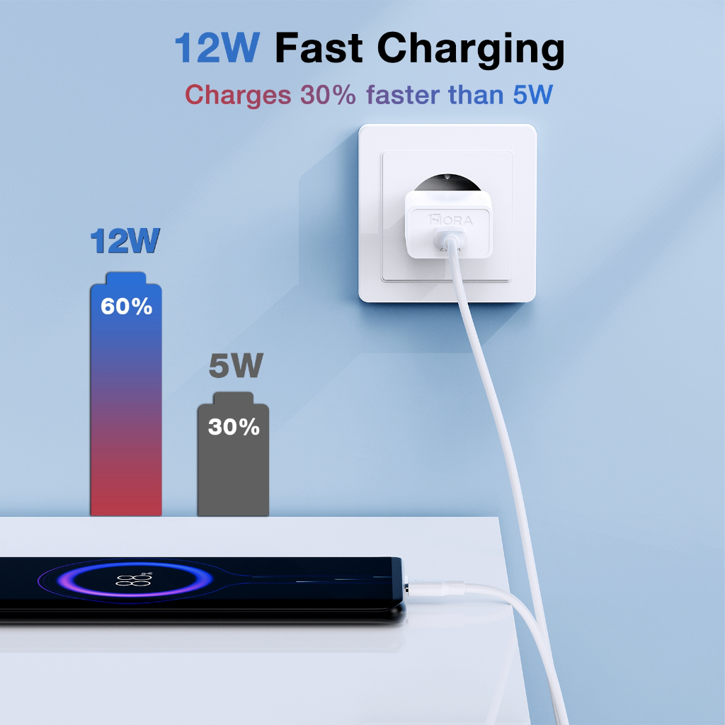 [Star]1HORA 12W Quick Charging Kepala Charger Set With 2.4A Kabel Micro Usb Original For Android hp Adapter