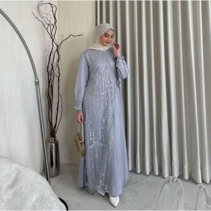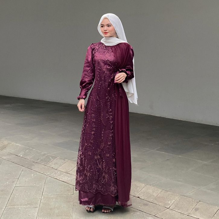 gamis kondangan remaja kinar gamis brokat burgundy premium maxi dress pesta exclusive kekinian laris