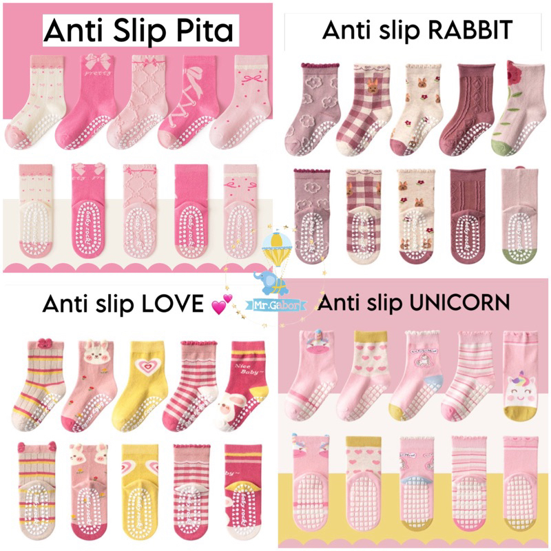 5 PASANG kaos kaki ANTI SLIP anak perempuan motif lucu