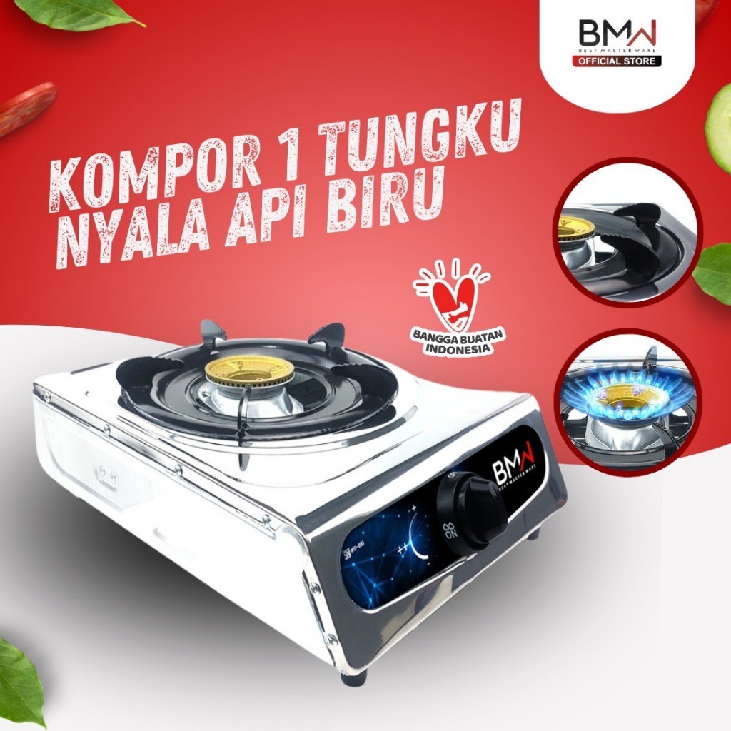 BMW KOMPOR GAS 1 TUNGKU STAINLESS KOMPOR GAS API BIRU