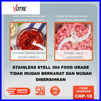 Votre Chp-18 Chopper Penggiling Daging Makanan Garansi Resmi 1 Tahun
