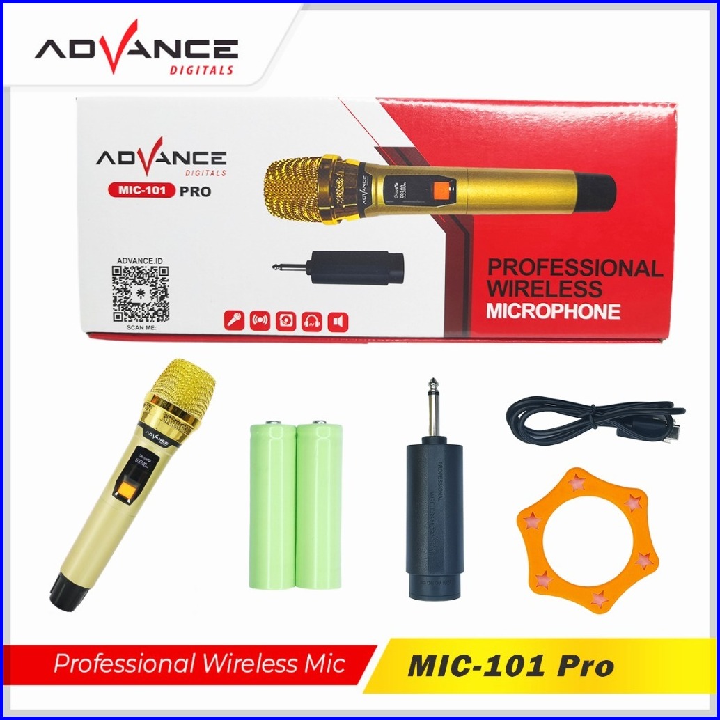 Advance Mic-101 Pro Single Mic Wireless Uhf Nirkabel Recharger Baterai Garansi Resmi 1 Tahun