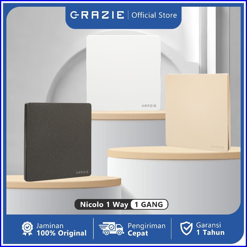 Grazie Nicolo Gray Black Series Saklar 1 Gang 1 Arah Saklar Lampu 1 Way
