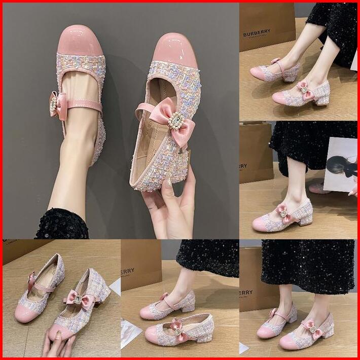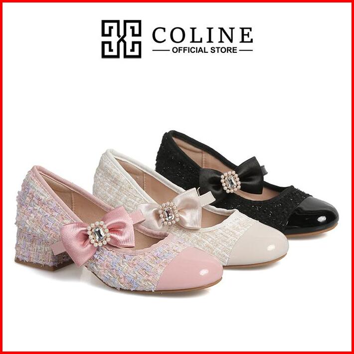 Coline Cln-2851 Tweed Hak Tahu Wanita C1238 Shoes Heels High